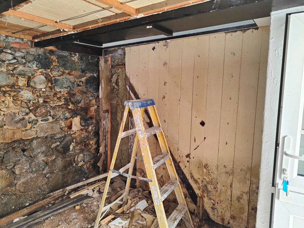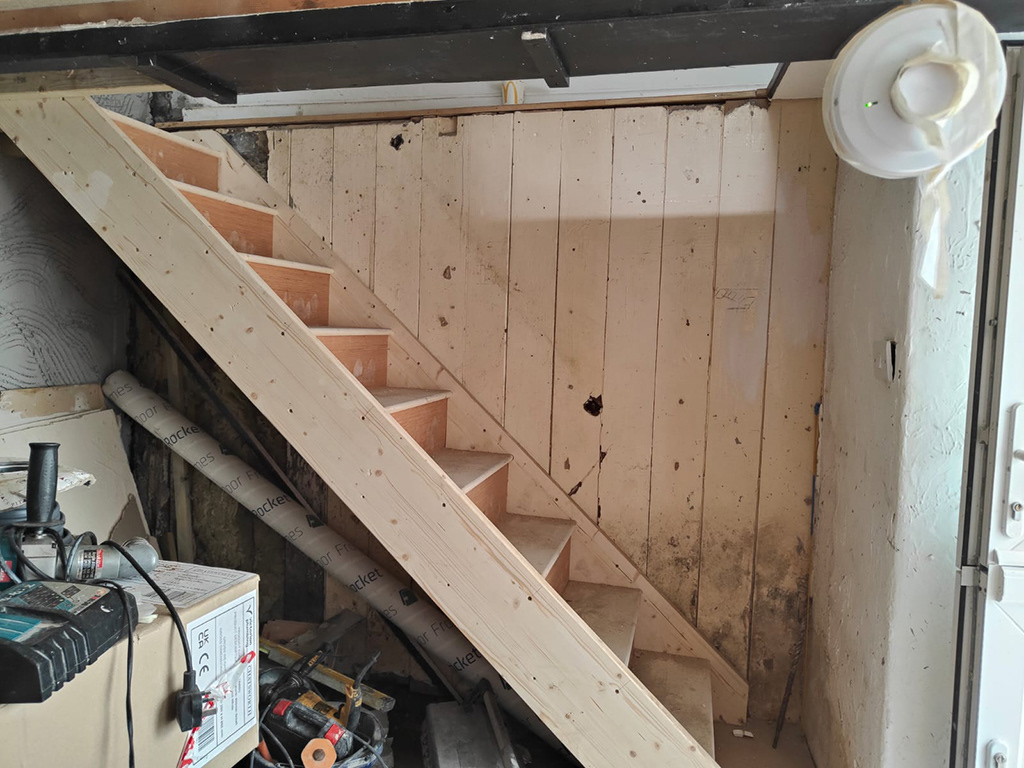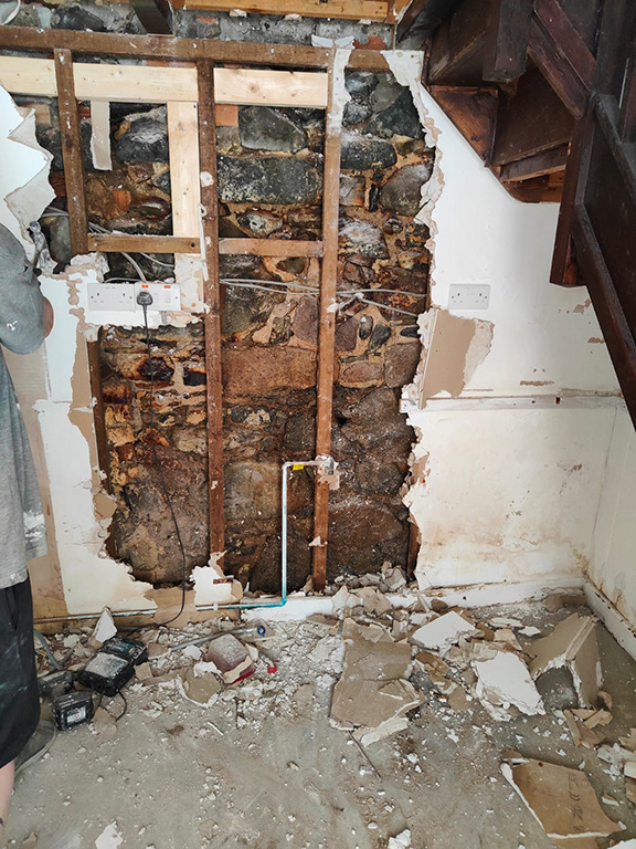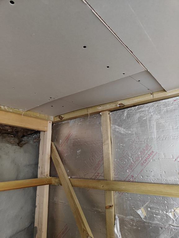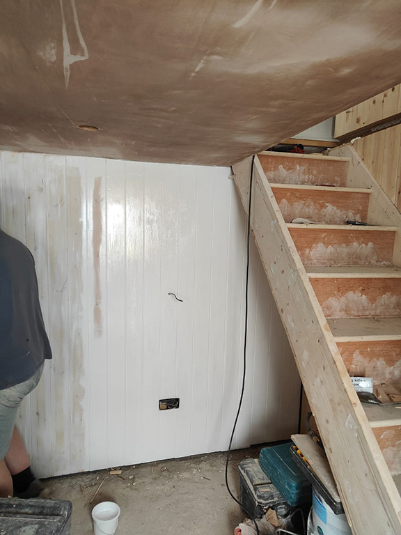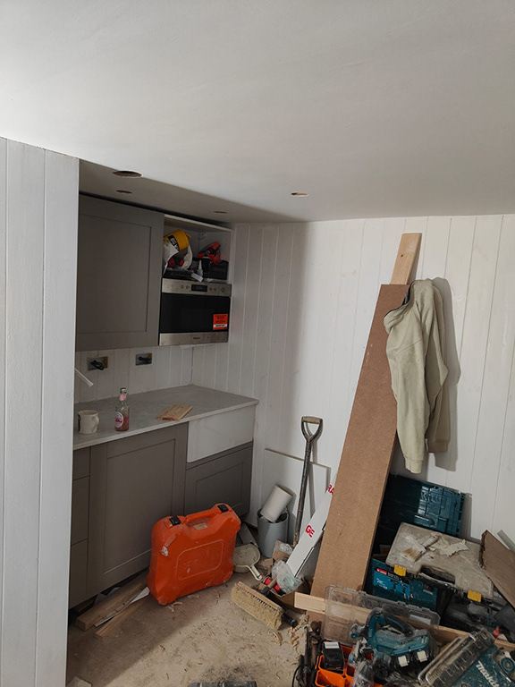 This cabin studio went through a total refurbishment. A new stud wall was added to devide the bathroom with the kitchenette. The walls have been tanked to prevent damp and sound proofing the ceilings to prevent noise between the two self contained units.AFTER